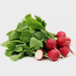 Crisp small round radishes with a mild peppery bite and vibrant red skin, perfect for salads and garnishes.